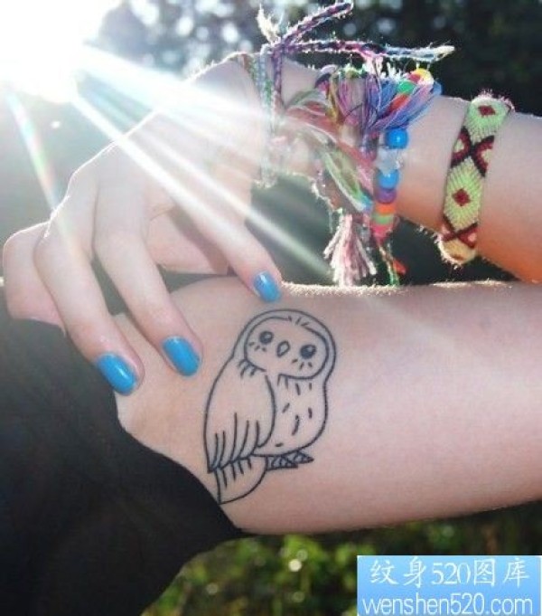 一幅女人胳膊猫头鹰纹身图片由纹身520图库推荐_动物纹身图案大全_纹身图吧