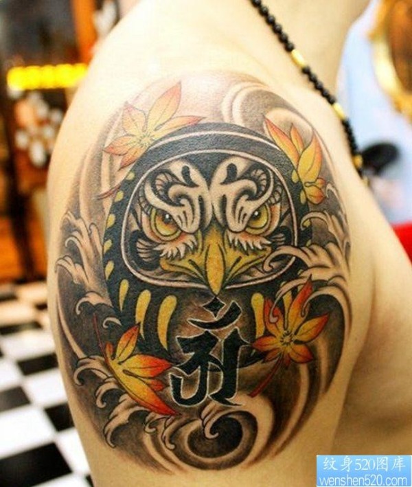 达摩猫头鹰纹身图片由纹身520图库推荐_动物纹身图案大全_纹身图吧