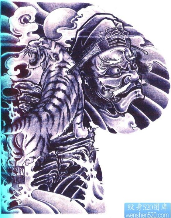 纹身吧推荐的男生王者风范之半胛钟馗老虎纹身_动物纹身图案大全_纹身图吧