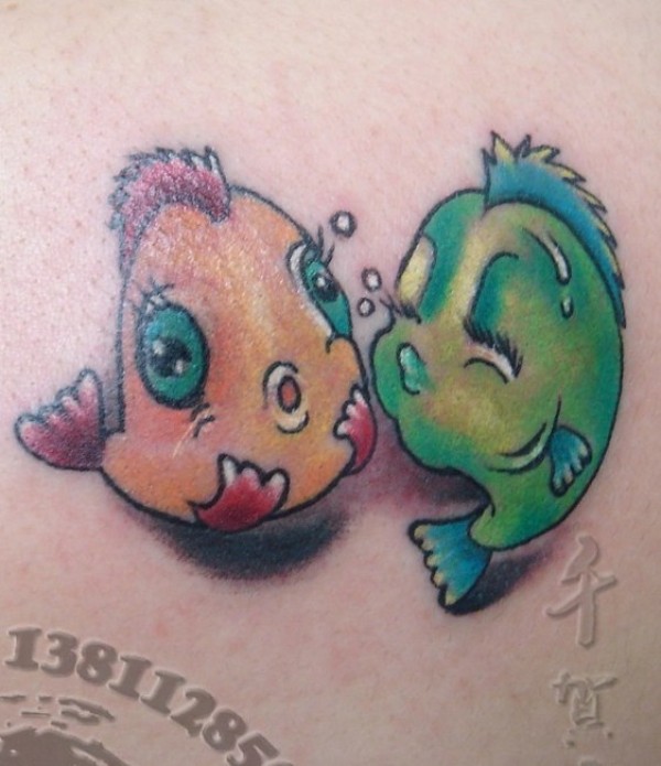 很可爱很萌的亲嘴鱼纹身,适合女性的小纹身_动物纹身图案大全_纹身图吧