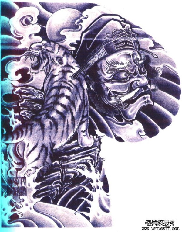 纹身吧推荐的男人王者风范之半胛钟馗老虎纹身_动物纹身图案大全_纹身图吧