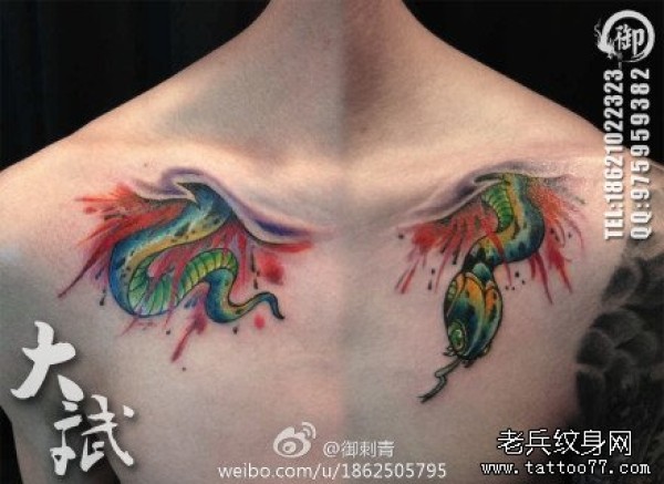 前胸超帅的撕皮蛇纹身图案_动物纹身图案大全_纹身图吧
