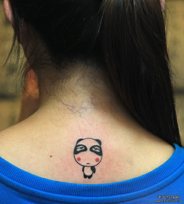 一款女性颈部熊猫纹身图案_动物纹身图案大全_纹身图吧