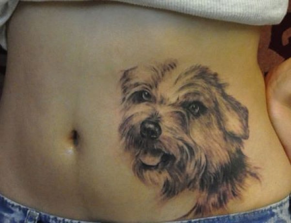 腹部纹身图案腹部小狗纹身图案_动物纹身图案大全_纹身图吧