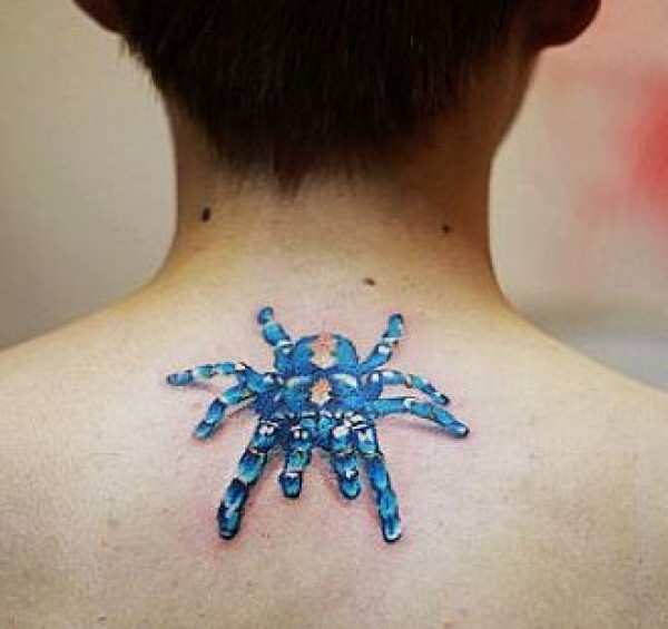 颈部纹身图案颈部彩色蜘蛛纹身图案_动物纹身图案大全_纹身图吧