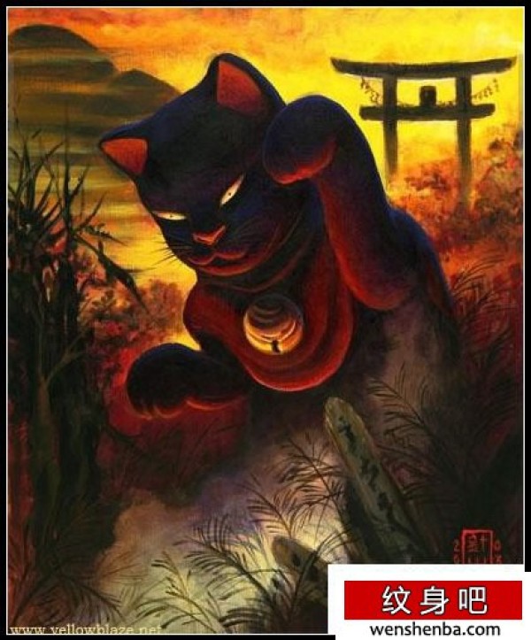 彩色招财猫纹身图案_动物纹身图案大全_纹身图吧