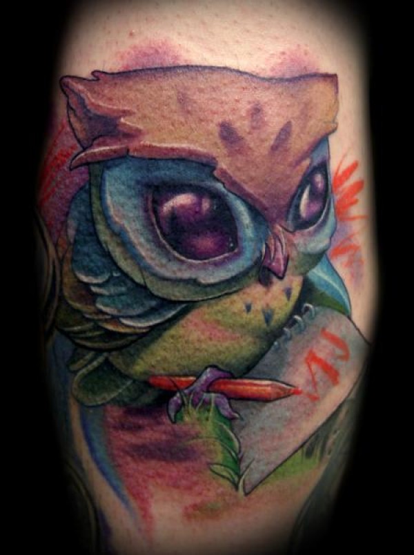 专业纹身介绍一款彩色猫头鹰纹身图案_动物纹身图案大全_纹身图吧