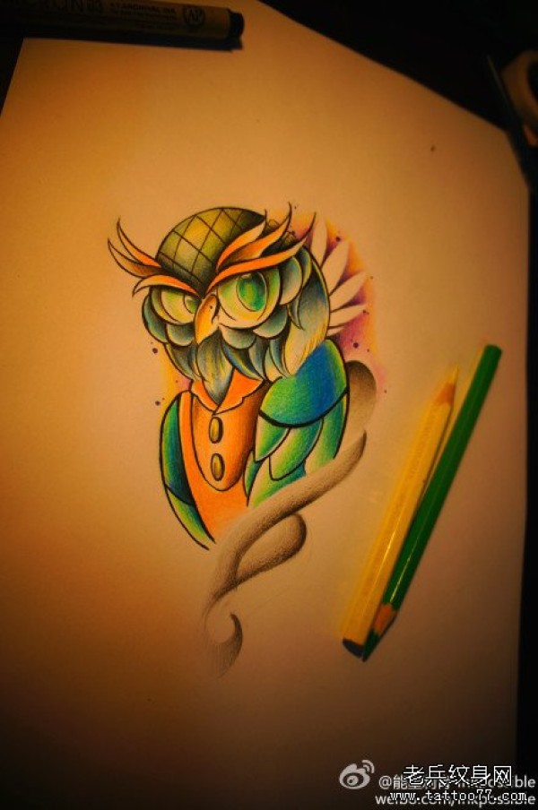一款好看时尚的猫头鹰纹身图案_动物纹身图案大全_纹身图吧