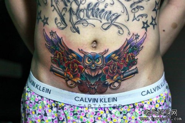 男生腹部好看的猫头鹰纹身图案_动物纹身图案大全_纹身图吧