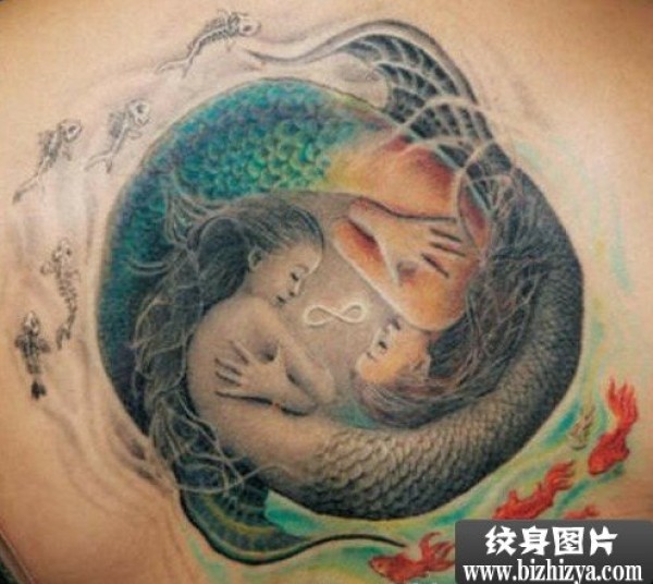 美人鱼阴阳图案图案图片_动物纹身图案大全_纹身图吧