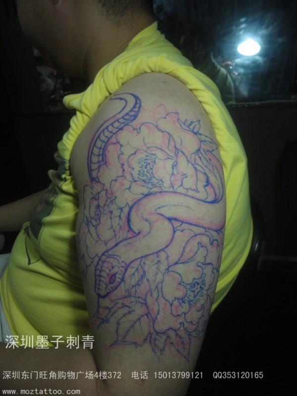 蛇 牡丹_动物纹身图案大全_纹身图吧