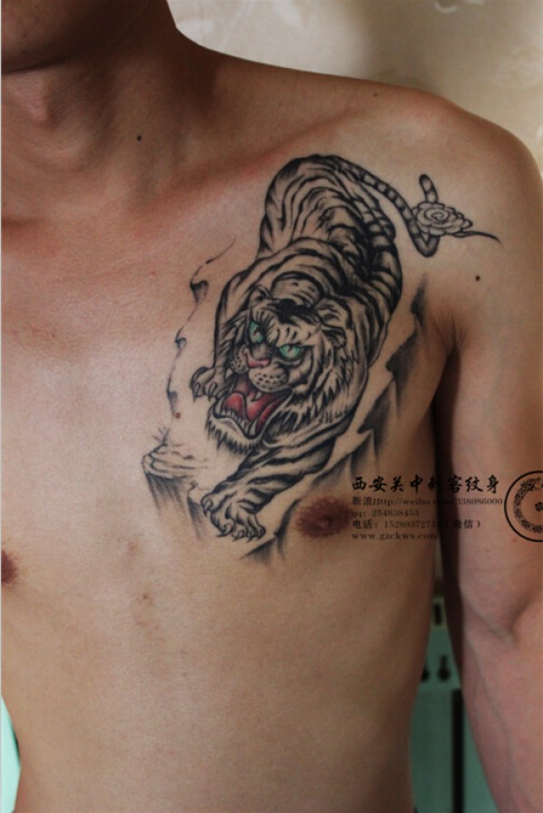 胸口老虎纹身 西安关中刺客纹身西安关中刺客_动物纹身图案大全_纹身图吧