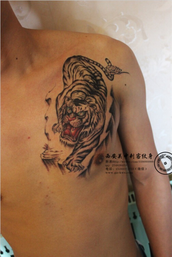 胸口老虎纹身 西安关中刺客纹身西安关中刺客_动物纹身图案大全_纹身图吧