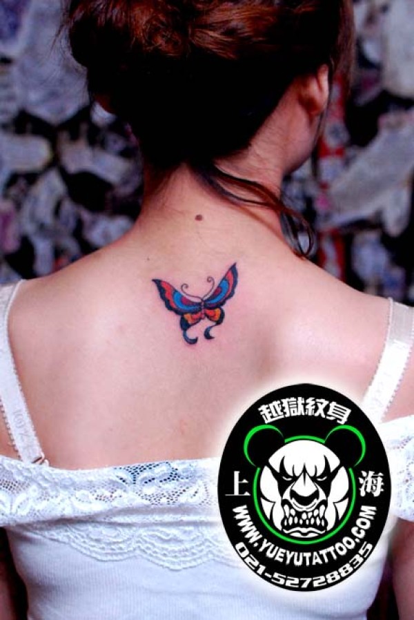 颈部彩蝶纹身图案_动物纹身图案大全_纹身图吧