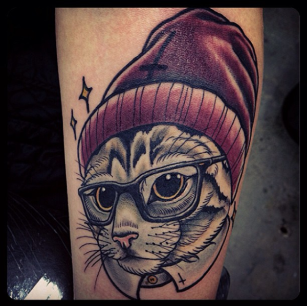 分享一款时尚个性的猫咪纹身图案_动物纹身图案大全_纹身图吧