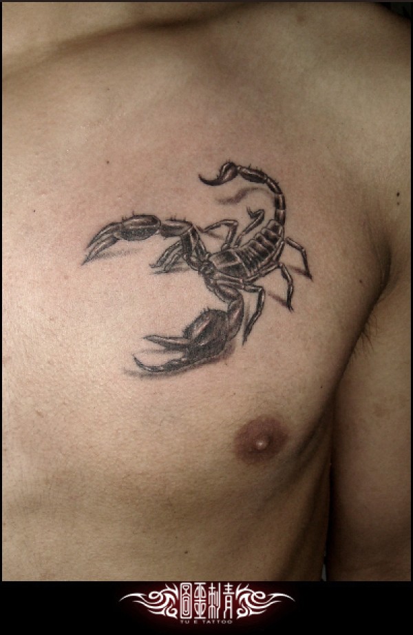 分享一款时尚经典的胸口蝎子纹身图案_动物纹身图案大全_纹身图吧