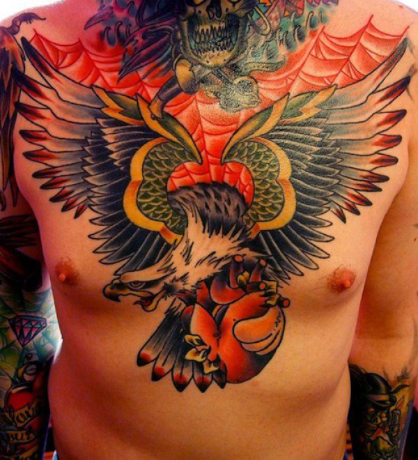 男人前胸帅气很酷的老鹰纹身图案_动物纹身图案大全_纹身图吧