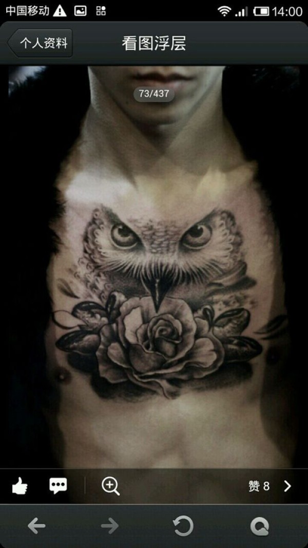 男生前胸很酷帅气的猫头鹰纹身图案_动物纹身图案大全_纹身图吧