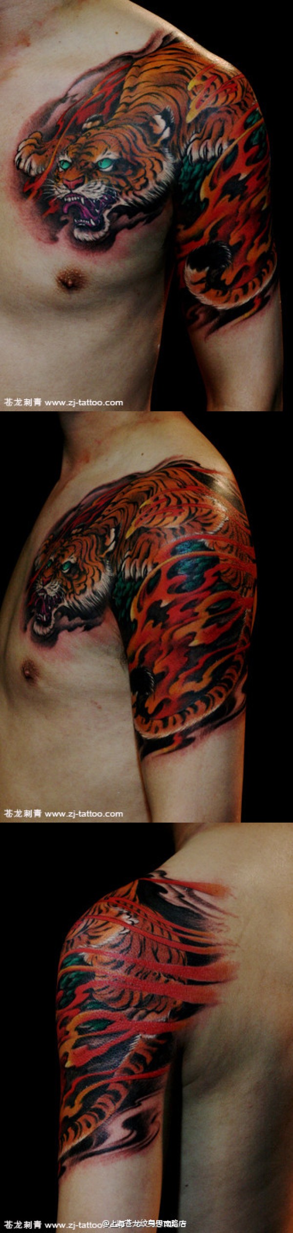 很帅超酷的半胛老虎纹身图案_动物纹身图案大全_纹身图吧