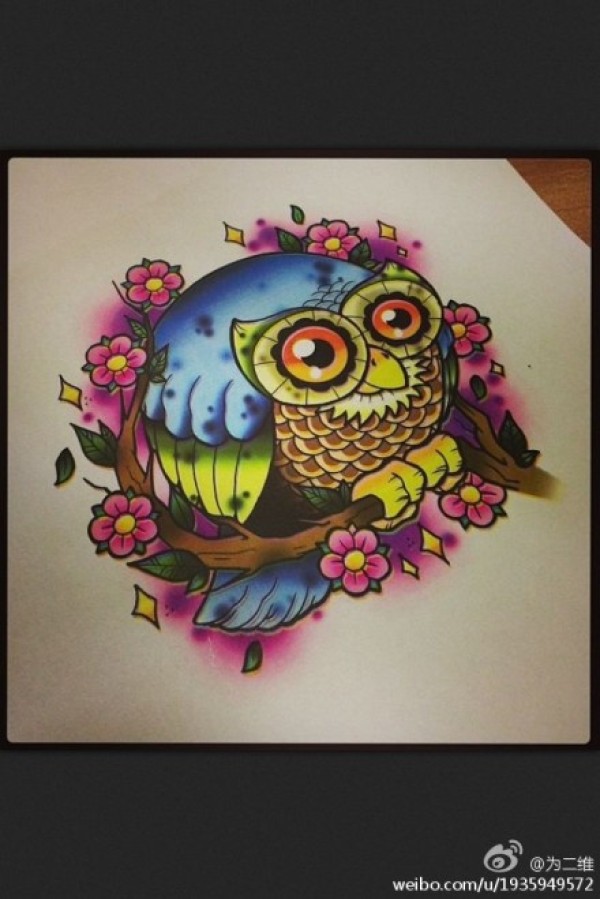 一款可爱很萌的猫头鹰纹身图案_动物纹身图案大全_纹身图吧
