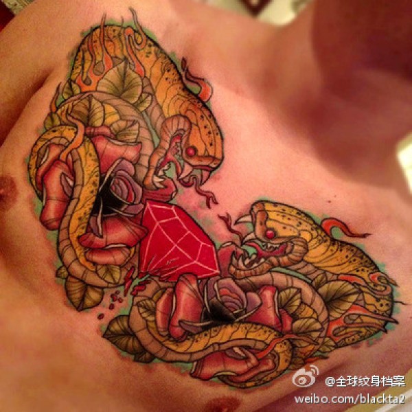 男人前胸超帅经典的彩色蛇纹身图案_动物纹身图案大全_纹身图吧