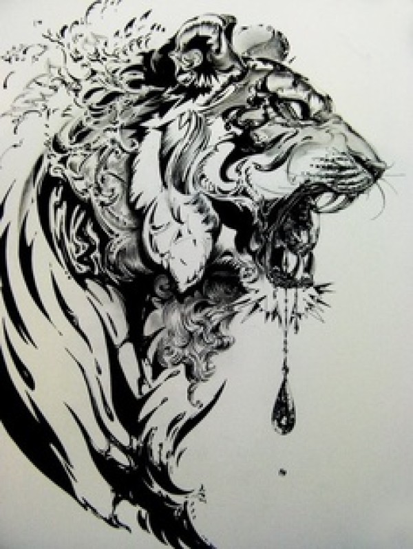 一款个性时尚的水墨风格老虎纹身图案_动物纹身图案大全_纹身图吧