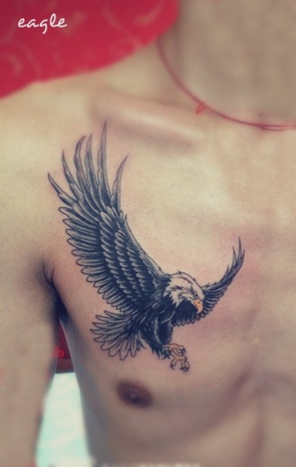 男人一款经典的胸口老鹰纹身图案_动物纹身图案大全_纹身图吧