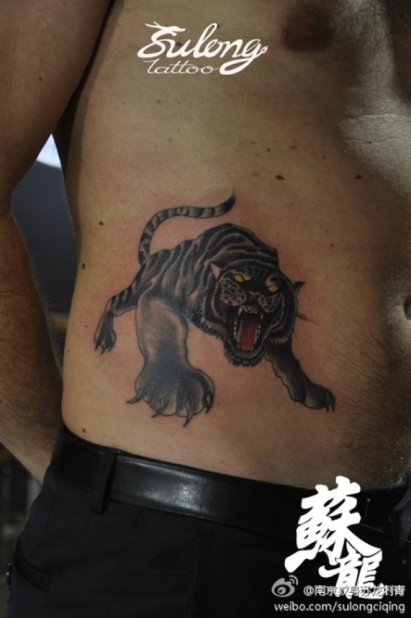 男人腹部很酷经典的一款老虎纹身图案_动物纹身图案大全_纹身图吧