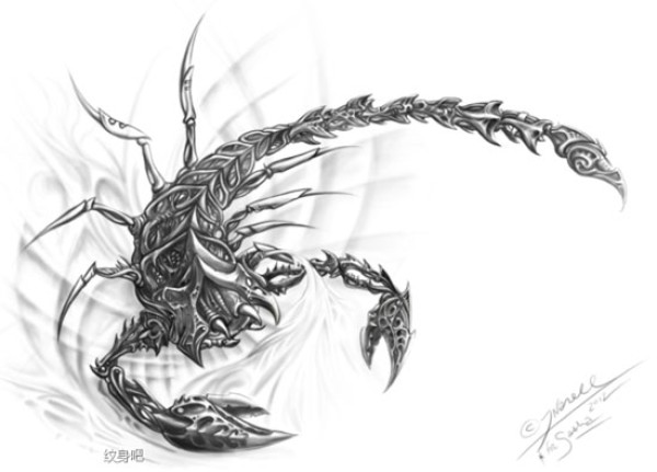 一款很酷经典的机械蝎子纹身图案_动物纹身图案大全_纹身图吧