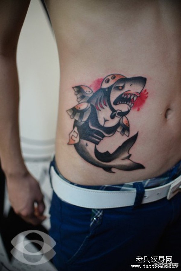 男生腹部潮流帅气的鲨鱼纹身图案_动物纹身图案大全_纹身图吧
