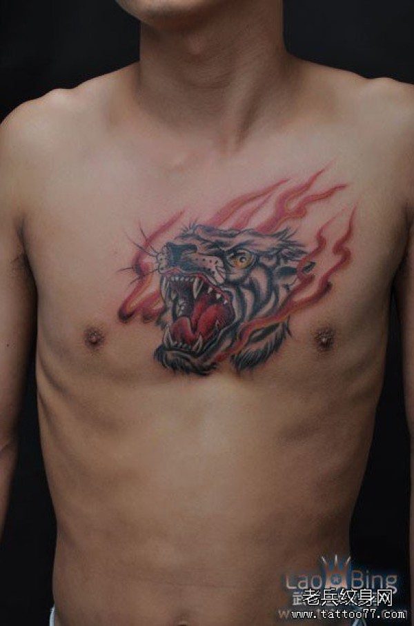 推荐一款霸气的胸口老虎纹身图案_动物纹身图案大全_纹身图吧