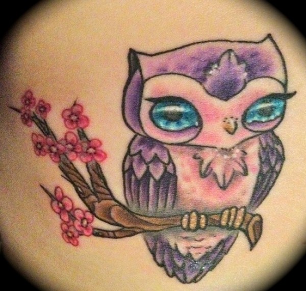 一款可爱蛮萌的猫头鹰纹身图案_动物纹身图案大全_纹身图吧