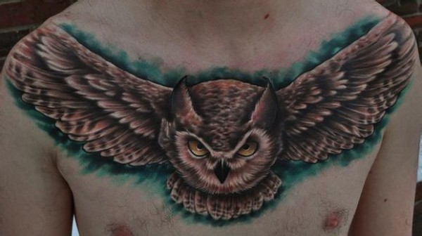 男人前胸超酷帅气的猫头鹰纹身图案_动物纹身图案大全_纹身图吧