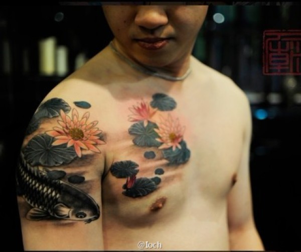 唯美经典的半胛水墨鱼纹身图案_动物纹身图案大全_纹身图吧