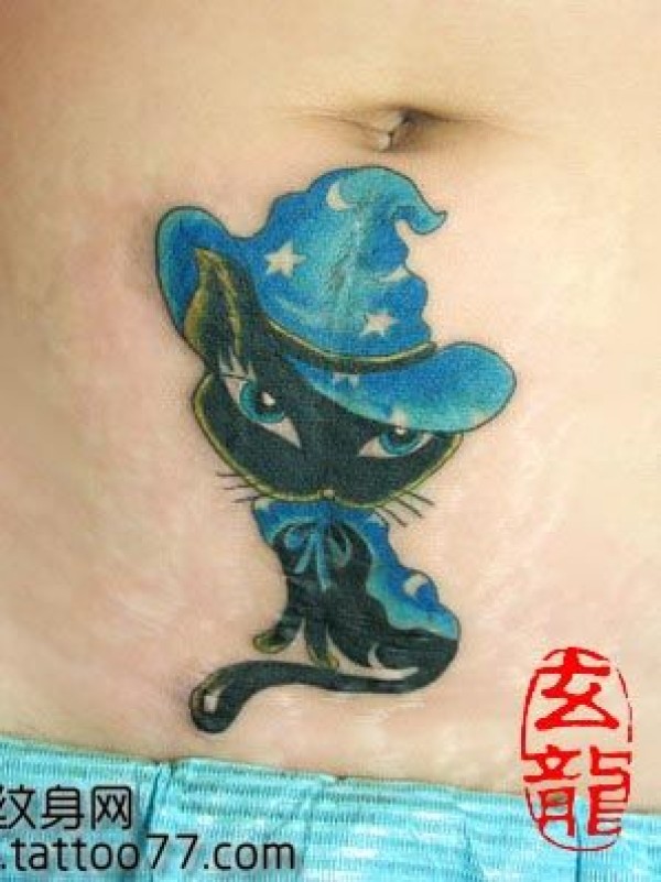 疤痕遮盖腹部猫咪纹身图案_动物纹身图案大全_纹身图吧