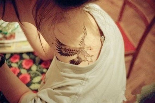 女孩子颈部一款老鹰纹身图案_动物纹身图案大全_纹身图吧