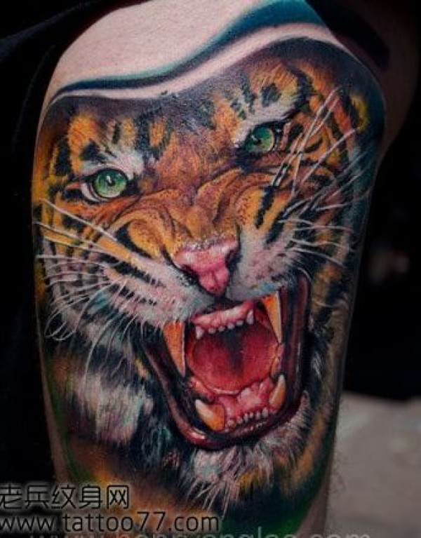 一款写实的彩色虎头纹身图案_动物纹身图案大全_纹身图吧