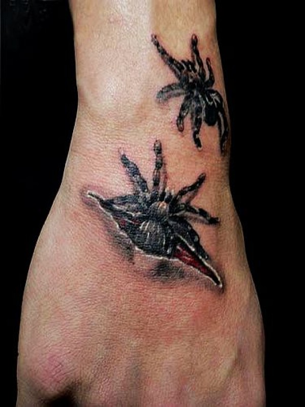 湖北随州纹身店手部撕皮蜘蛛文身图案图片大_动物纹身图案大全_纹身图吧