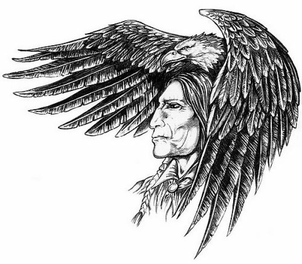 武汉纹身店印第安人老鹰纹身图案图片_动物纹身图案大全_纹身图吧