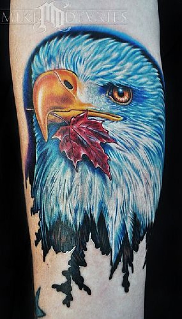 湖北荆州文身店手部彩色老鹰头纹身图案图片_动物纹身图案大全_纹身图吧