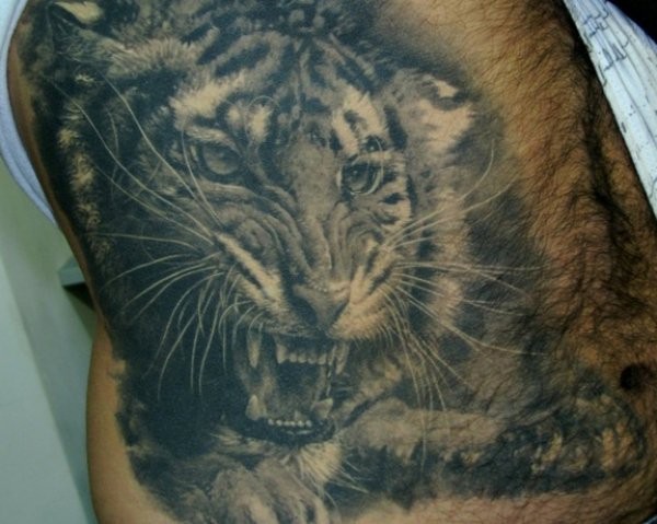武汉专业纹身店:一张很霸气的虎头纹身图案_动物纹身图案大全_纹身图吧