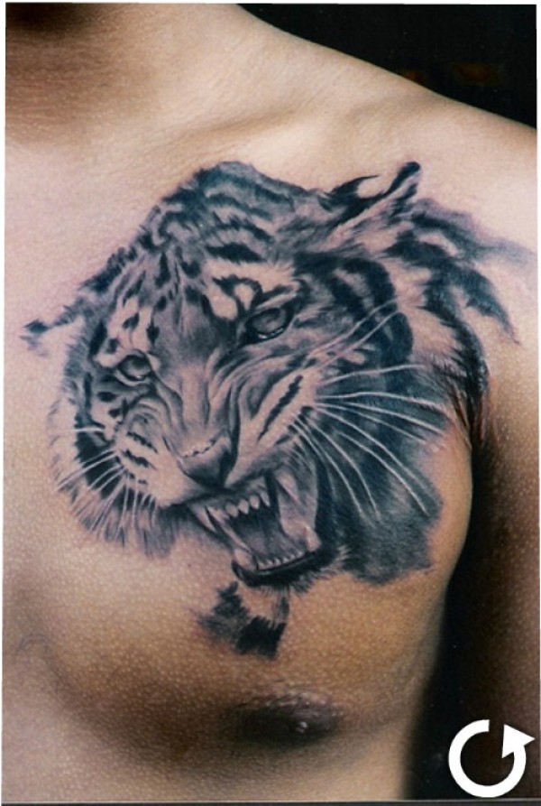 武汉最好纹身店:一款很猛的老虎纹身(TATTOO)图案_动物纹身图案大全_纹身图吧