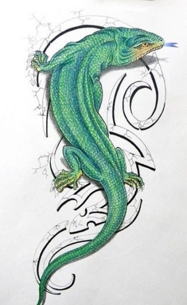华丽彩色蜥蜴纹身图案纹身图片_动物纹身图案大全_纹身图吧