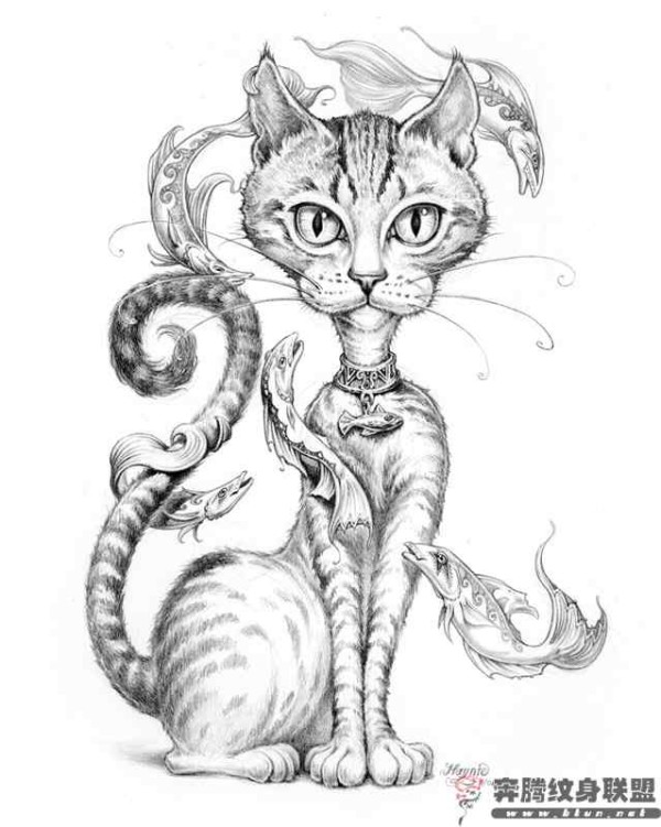 一幅猫和鱼的纹身图片_动物纹身图案大全_纹身图吧