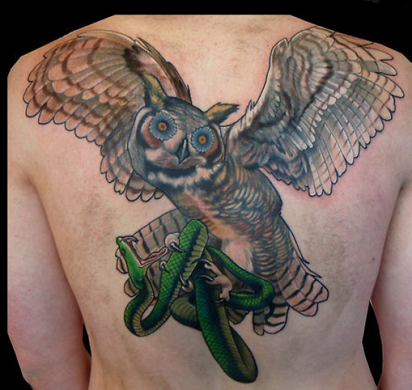 猫头鹰抓蛇图案_动物纹身图案大全_纹身图吧