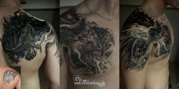 龙纹身手稿_一组老传统黑灰龙手稿纹身图案