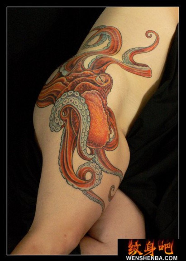 红色大章鱼纹身_动物纹身图案大全_纹身图吧