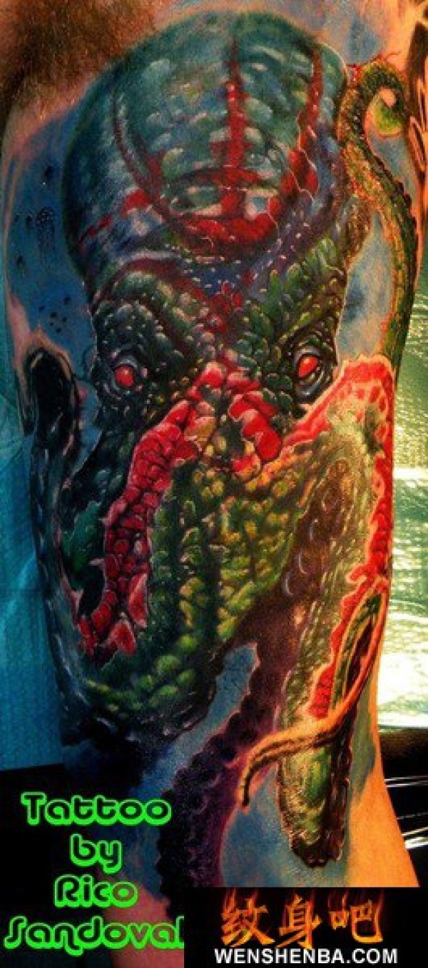 绚丽的章鱼纹身_动物纹身图案大全_纹身图吧