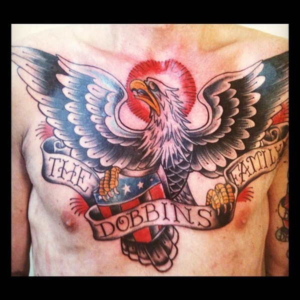 胸口彩色大鹰_动物纹身图案大全_纹身图吧