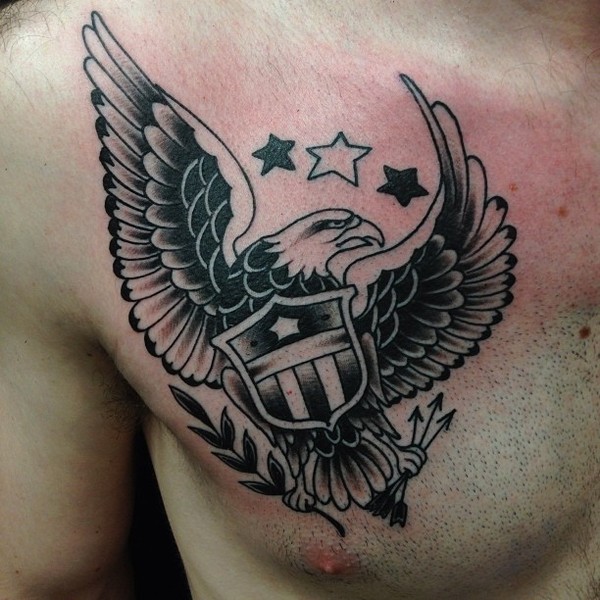 胸口灰白老鹰_动物纹身图案大全_纹身图吧